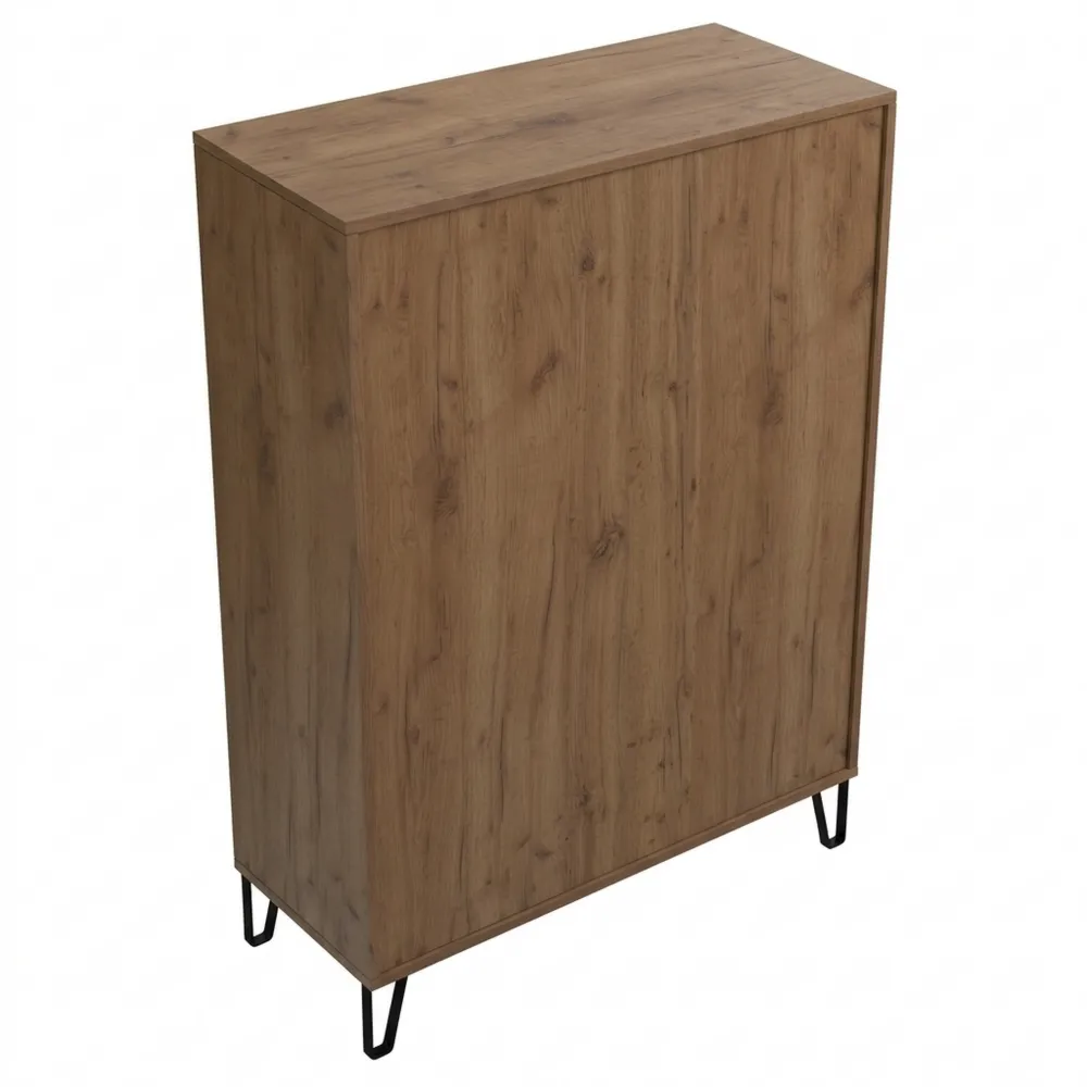 Das Produkt bietet ein modernes Design für das Wohnzimmer mit einer Graphit-Tiefzieh-Front und einem Korpus aus Eiche Kraft Gold Melamin Matt. Diese Kombination sorgt für eine stilvolle Atmosphäre und bietet Stauraum für persönliche Dinge. Kompakte Abmessungen von 63 x 172 x 40 cm für vielseitige Nutzung bieten eine Aufbewahrungsmöglichkeit. Die Vitrine hat 2 Türen und 2 Einlegeböden zur ordentlichen Aufbewahrung von Gegenständen. Hergestellt aus robustem Holzwerkstoff, ist die Vitrine pflegeleicht und bleibt lange ansehnlich.